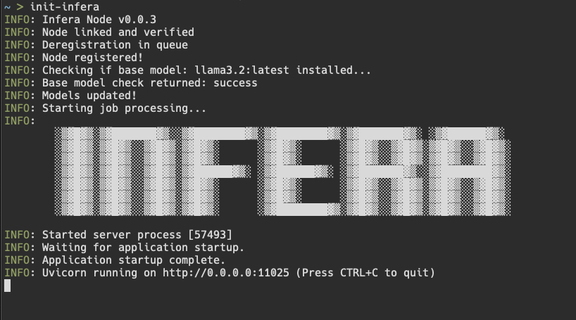 - Make sure you have the latest version of Ollama running before starting the Infera node.